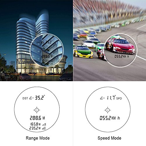 - ☛【MEDICIÓN PRECISA】Este distanciómetro láser de alta calidad, es capaz de medir un largo alcance de hasta 600 metros o 1000 metros con una precisión de +/- 1 yarda, a través de la lectura fácil. La pantalla de la lente muestra la distancia / velocidad, el ángulo, la distancia horizontal, la altura vertical.